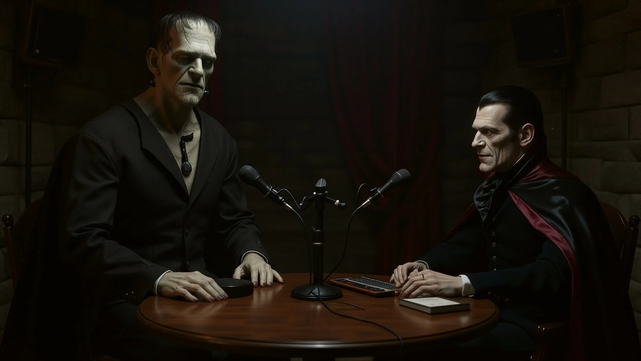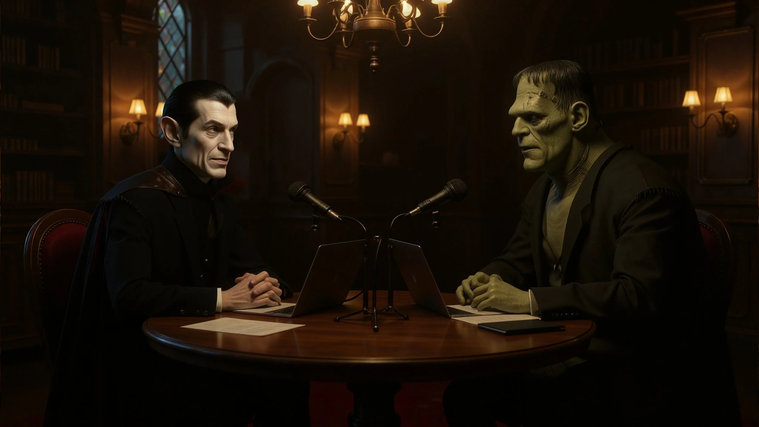 Two centuries of baggage. Zero chill. Undead Serious is a weekly, satirical talk show hosted by two of history’s most misunderstood icons—Count Dracula and Frankenstein’s monster—who take the mic like seasoned podcasters and, crucially, play it completely straight. They’re not in on the joke. That’s the fun. The tone is loose, unfiltered, and grown-up—think the riffy, conversational ease of modern comedy pods colliding with centuries of gothic baggage.