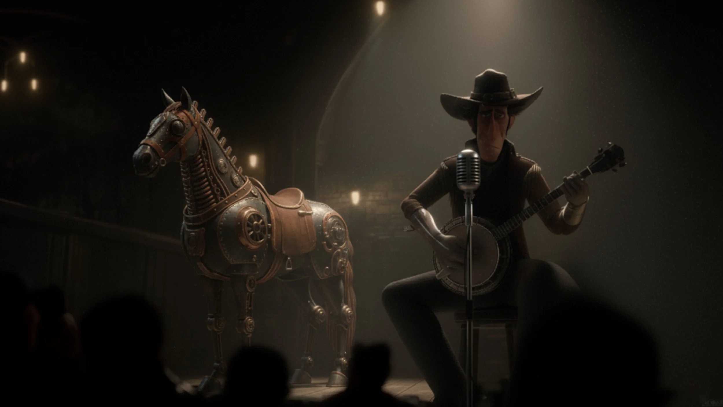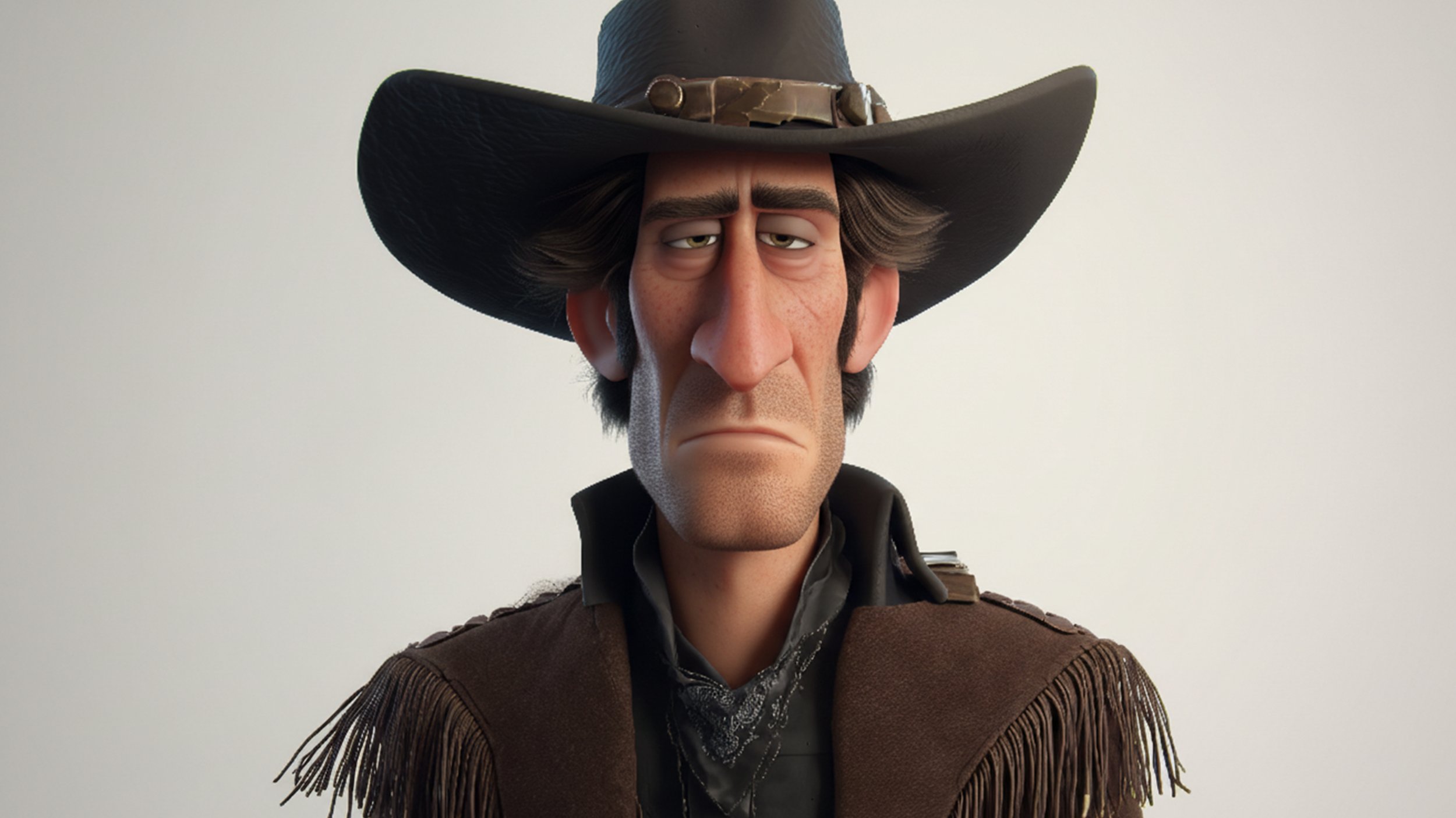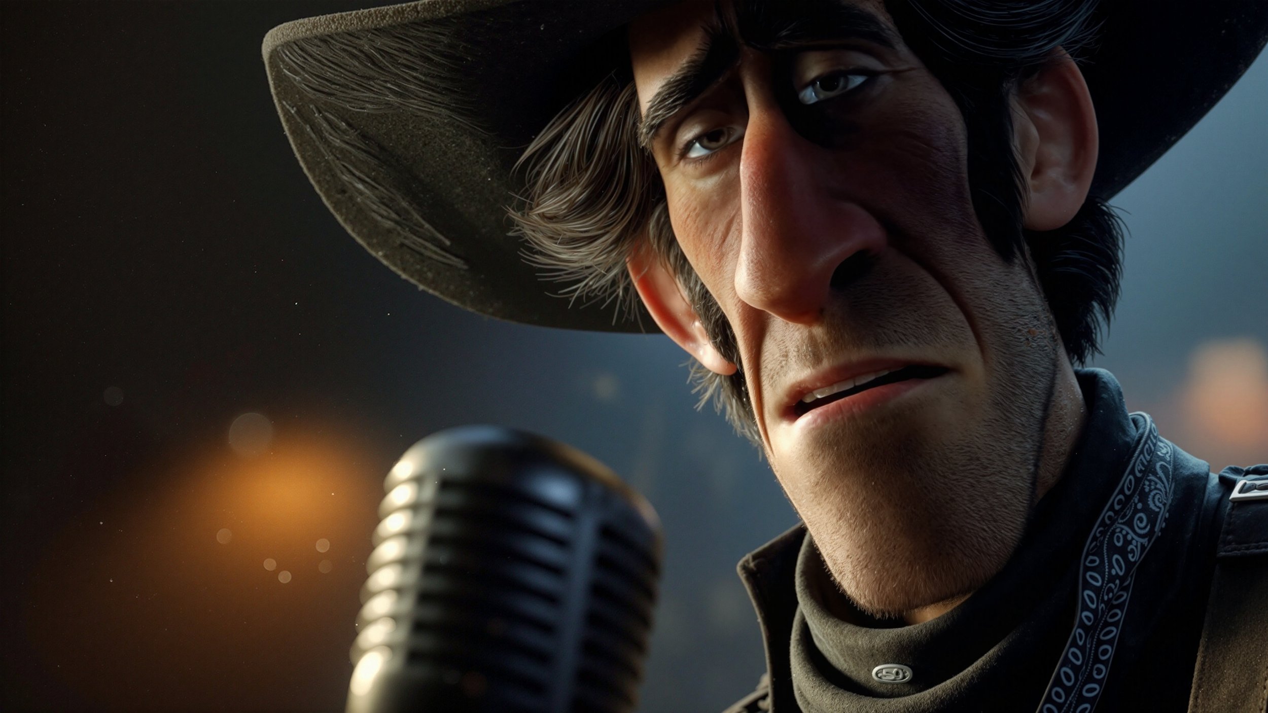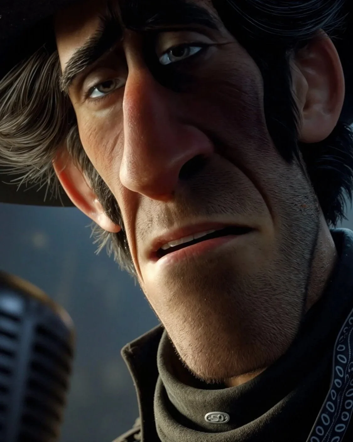 First, we use text-to-image prompts to iterate different characters for Wyoming Syntax. For this, we wanted a gritty 3d Animation look that maintained PBR details but have slightly exaggerated caricature features. Once we find a look that feels right, we create a “character bible”: polished sheets with front/¾/profile turns and a full expression range. Each image is up-res’d and hand-enhanced for continuity—skin detail, hair edges, fabric grain—so the dataset teaches the right cues. We then fine-tune a LoRA on this curated set to lock visual consistency across new prompts, lenses, and scenes. Finally, we train a custom HeyGen avatar so the character can perform—accurate lip-sync, head motion, and eye behavior driven by scripts or vocals. The result is a production-ready digital actor who stays on-model in stills and video.