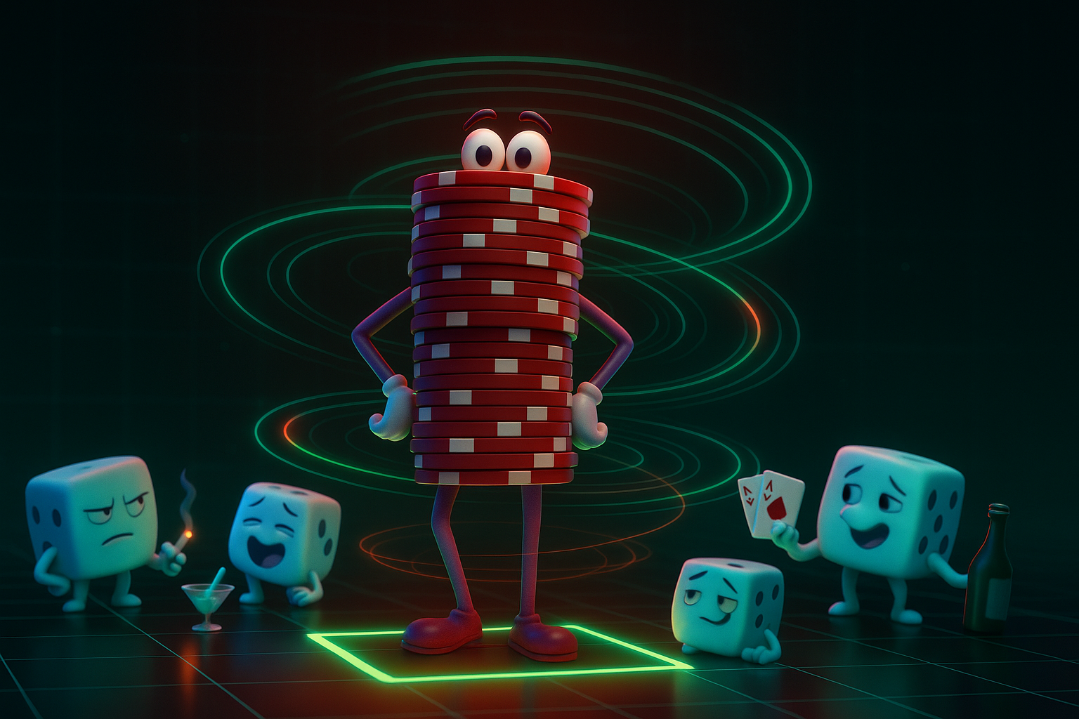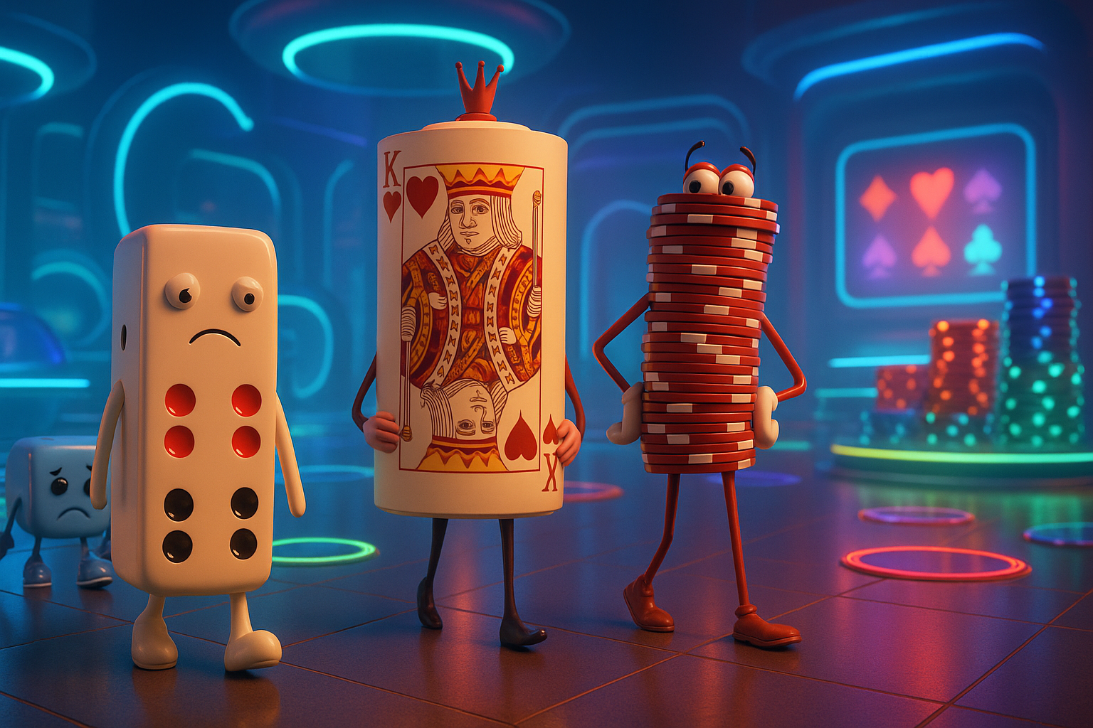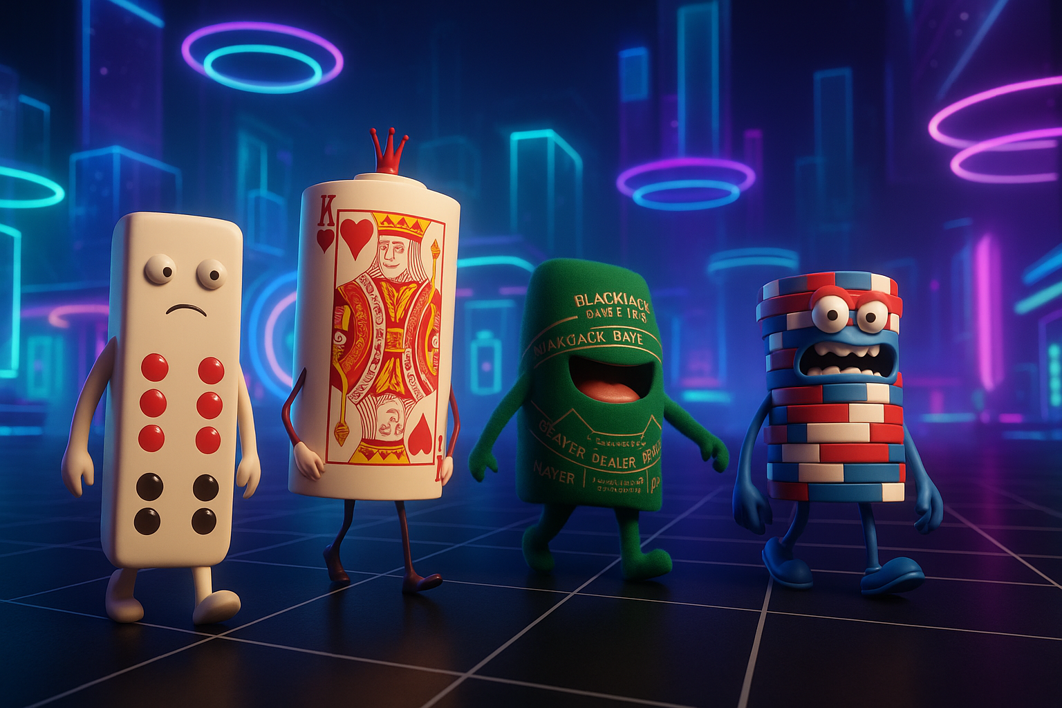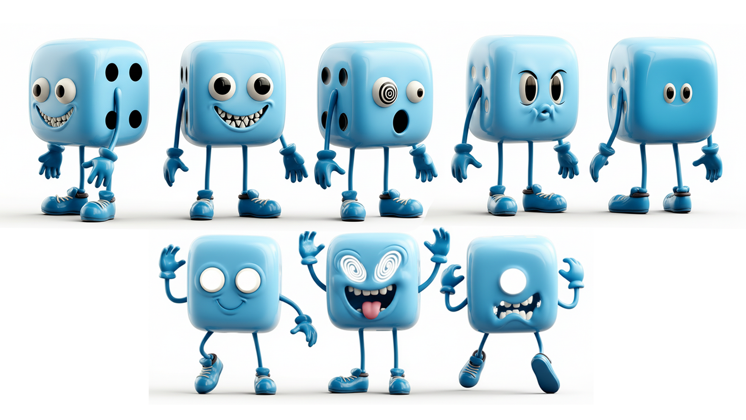 Lucky Logic Lucky Logic Lucky Logic CHARACTER GENERATIONS | PG-13 PIXAR STYLE BLUE THE DICE (HERO) BLUE THE DICE (ALTS) RUBY CHIP PAI GOW GUY (HERO) PAI GOW GUY (ALTS) CHIP STAX CHERRY SLOTS ACEY FELTY PLAYER CARDS DEALER CHIP BALL-E VIDEO DEMOS